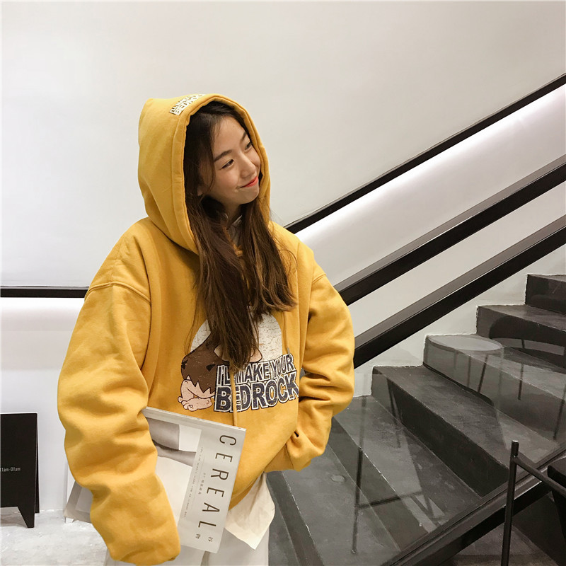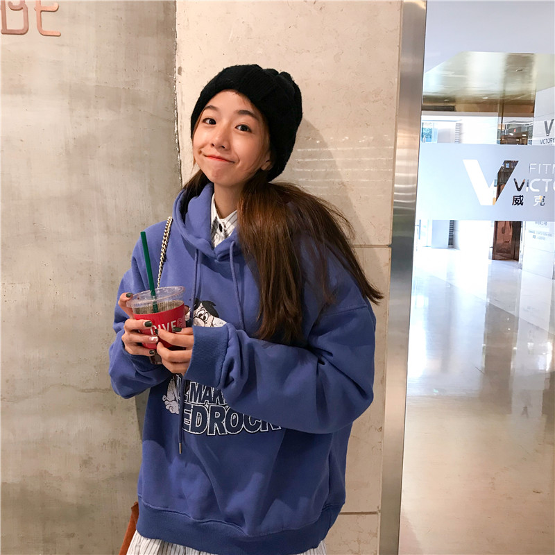 / 秋冬韓版中長款原宿風寬松字母卡通慵懶風連帽加絨超火衛衣外套女