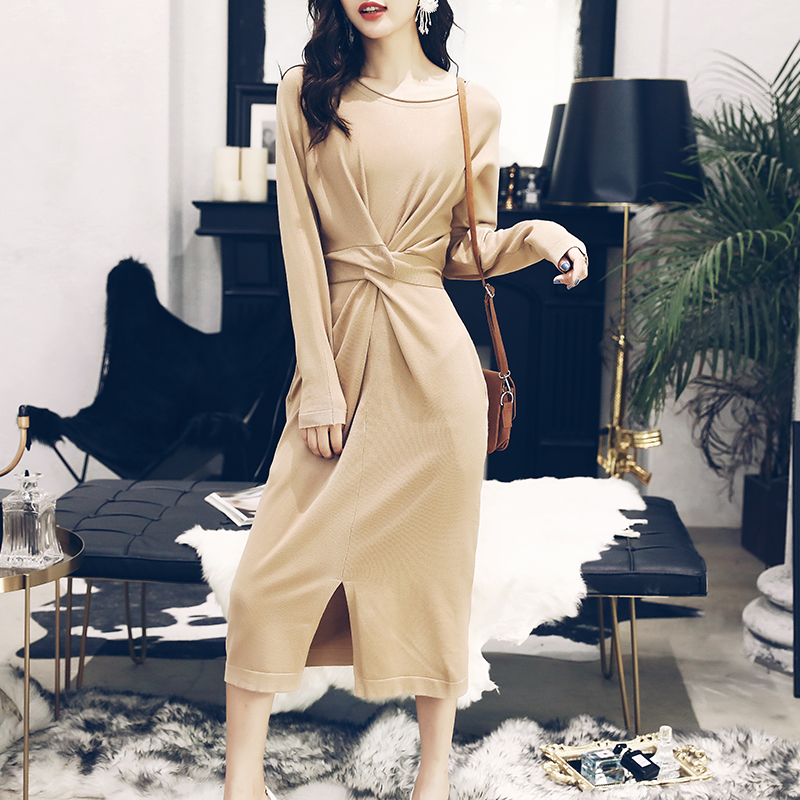 港味針織連衣裙女秋季2018新款中長款氣質名媛修身收腰包臀裙子潮