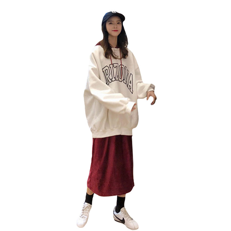 韓版時尚休閑套裝秋冬女裝字母刺繡連帽加絨衛衣+半身長裙兩件套