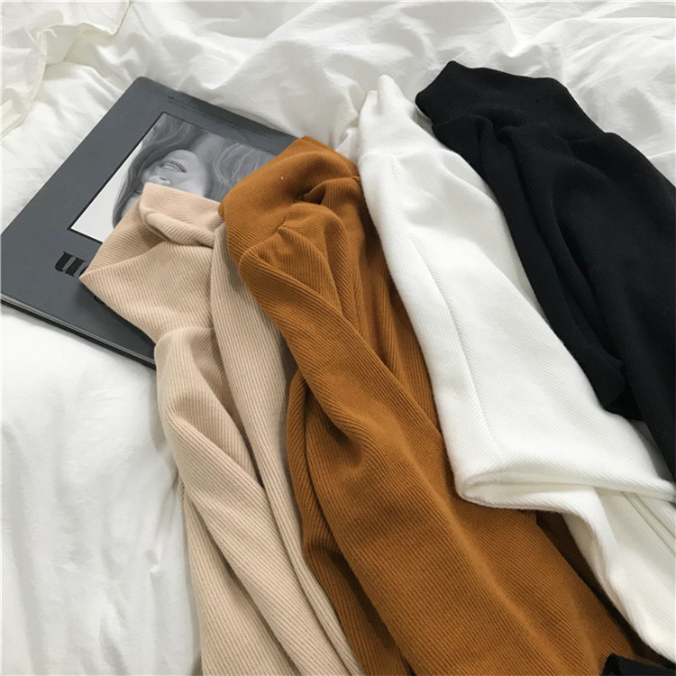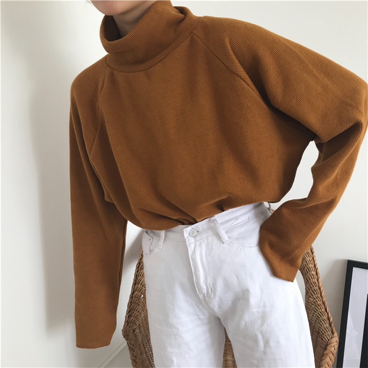 秋季女裝韓版chic復古寬松顯瘦高領打底衫長袖針織衫套頭毛衣上衣