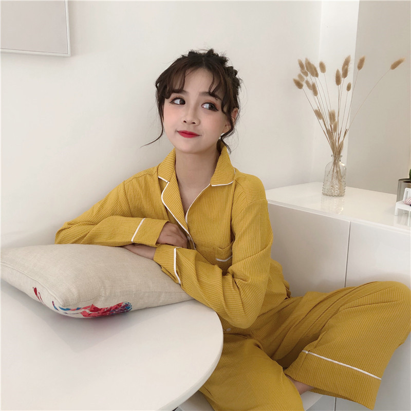 秋冬韓版小清新甜美長袖睡衣睡褲兩件套寬松學生休閑家居服套裝女