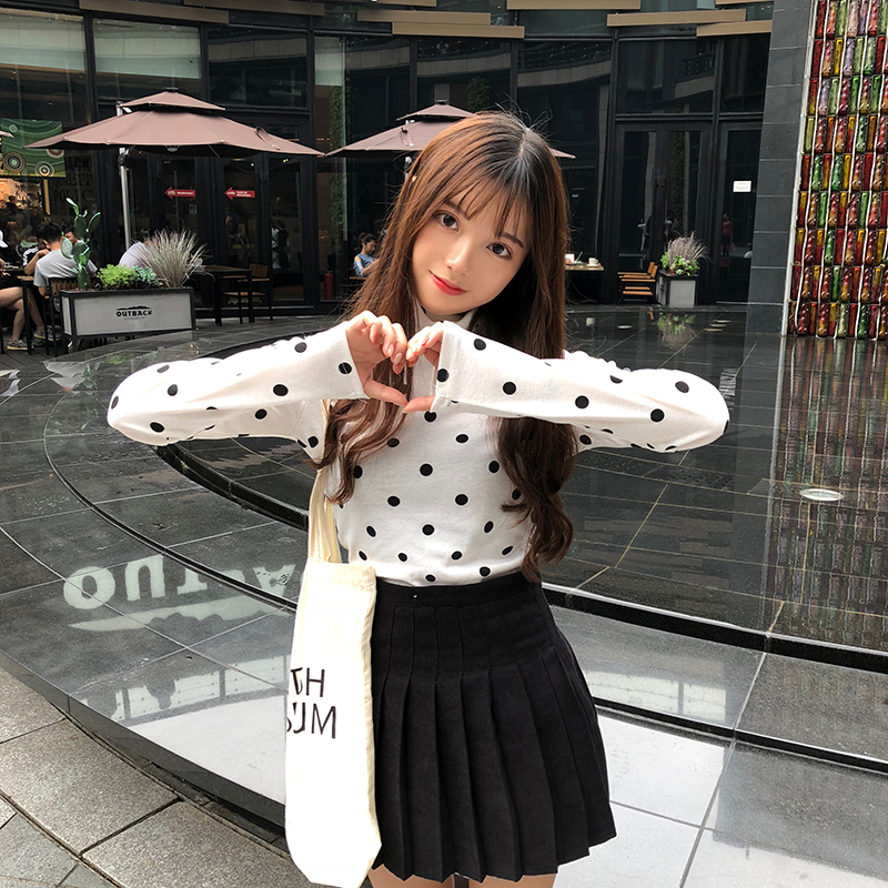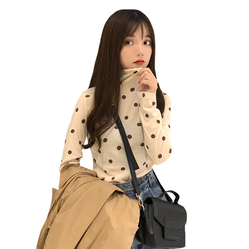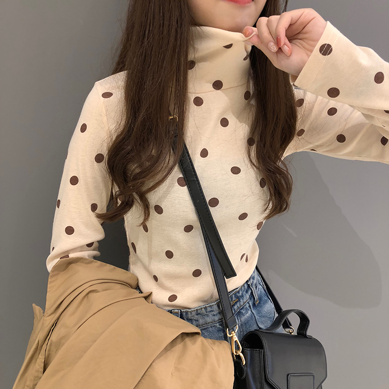 / 秋冬女裝韓版簡約修身顯瘦波點打底衫學生高領長袖T恤秋衣上衣潮