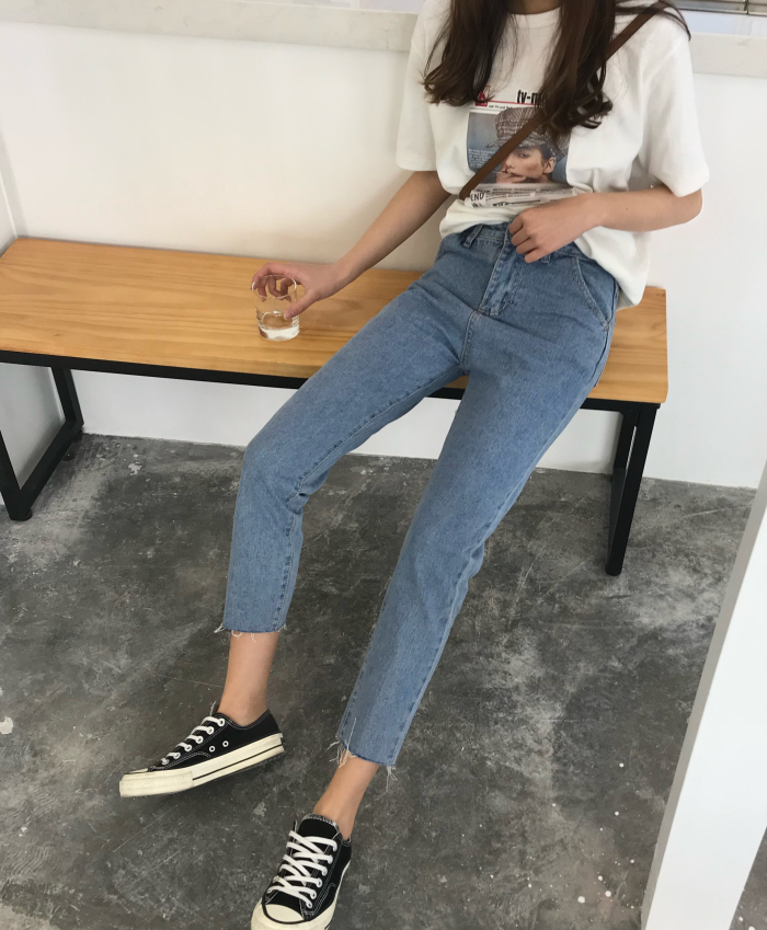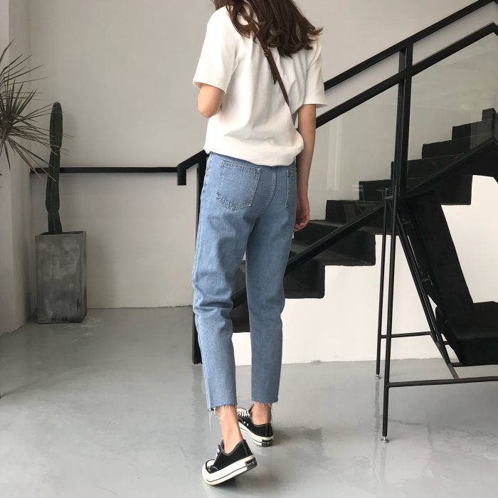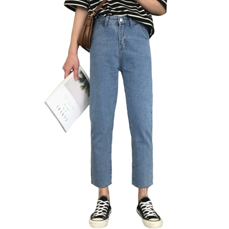 / 秋裝女裝韓版寬松顯瘦百搭直筒褲九分褲牛仔褲高腰簡約闊腿褲長褲