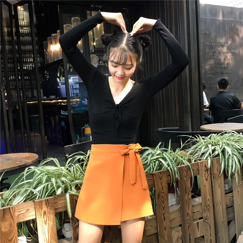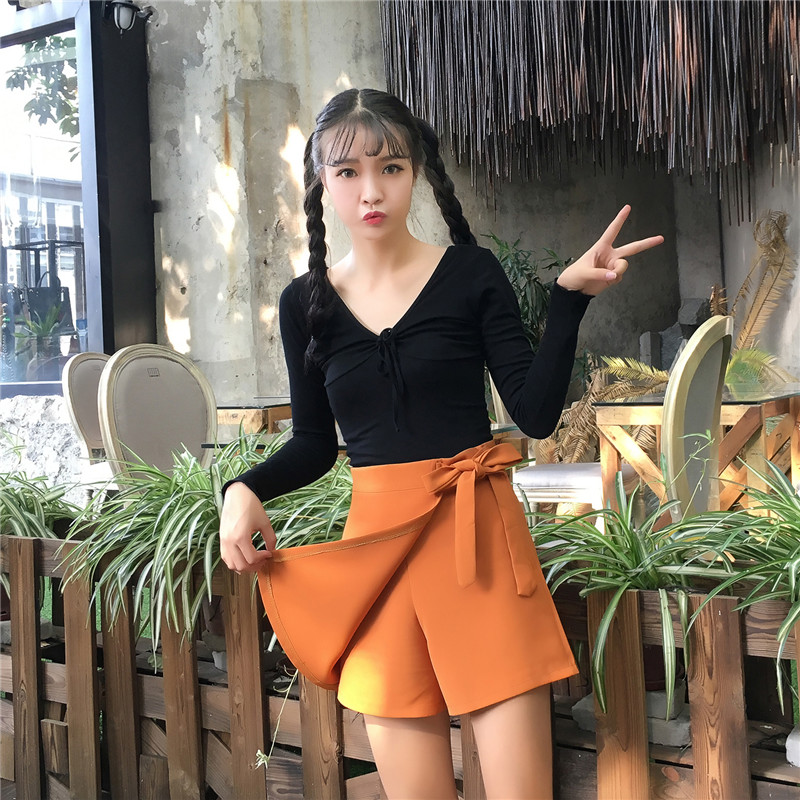 / 春季女裝新款韓版時尚純色高腰半身裙褲學生百搭顯瘦a字短褲裙子