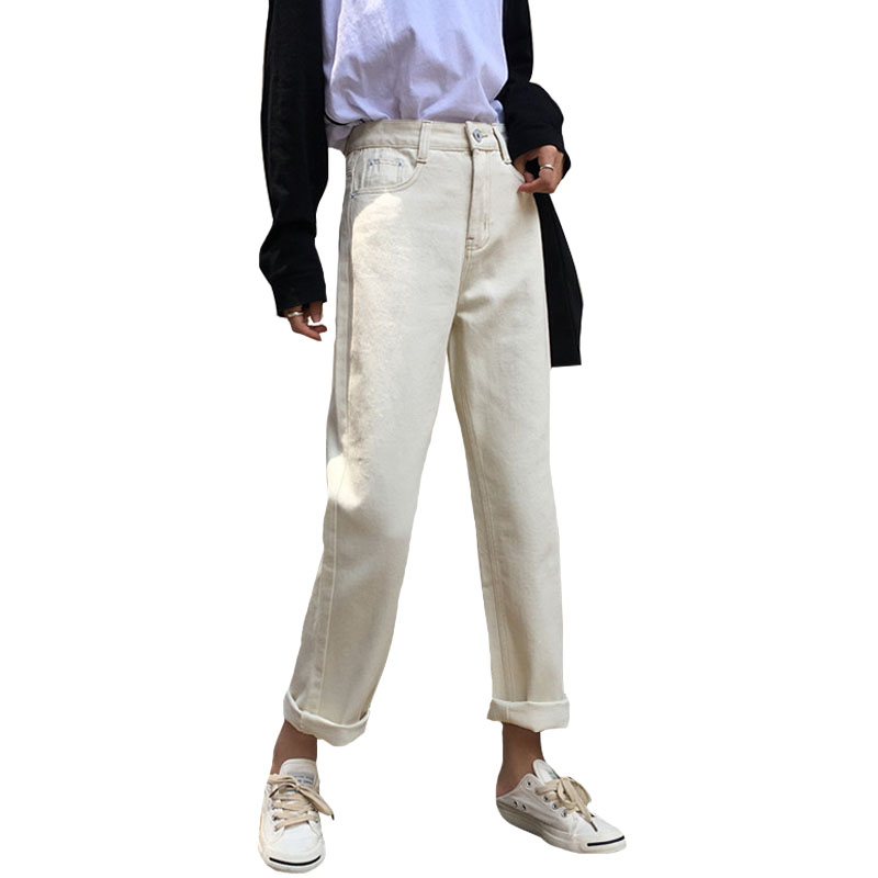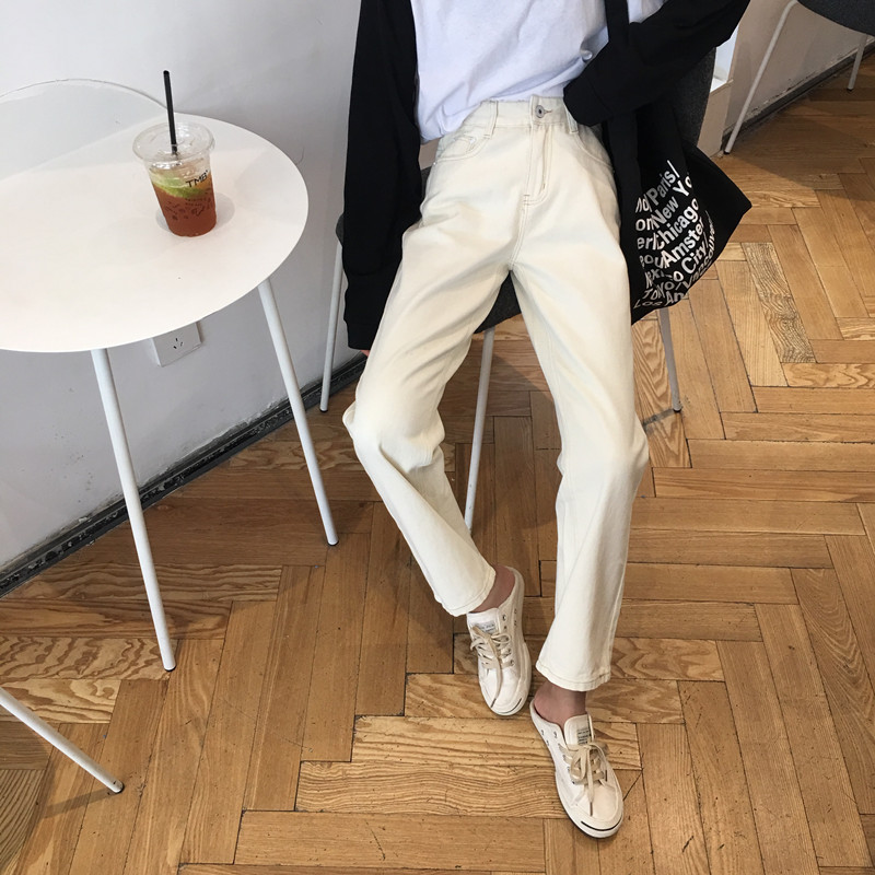 / 秋季韓版寬松百搭純色牛仔褲高腰顯瘦闊腿褲直筒褲長褲學生褲子女