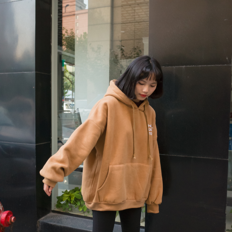 秋冬韓版寬松慵懶風字母繡花連帽加絨加厚套頭超火衛衣上衣外套女