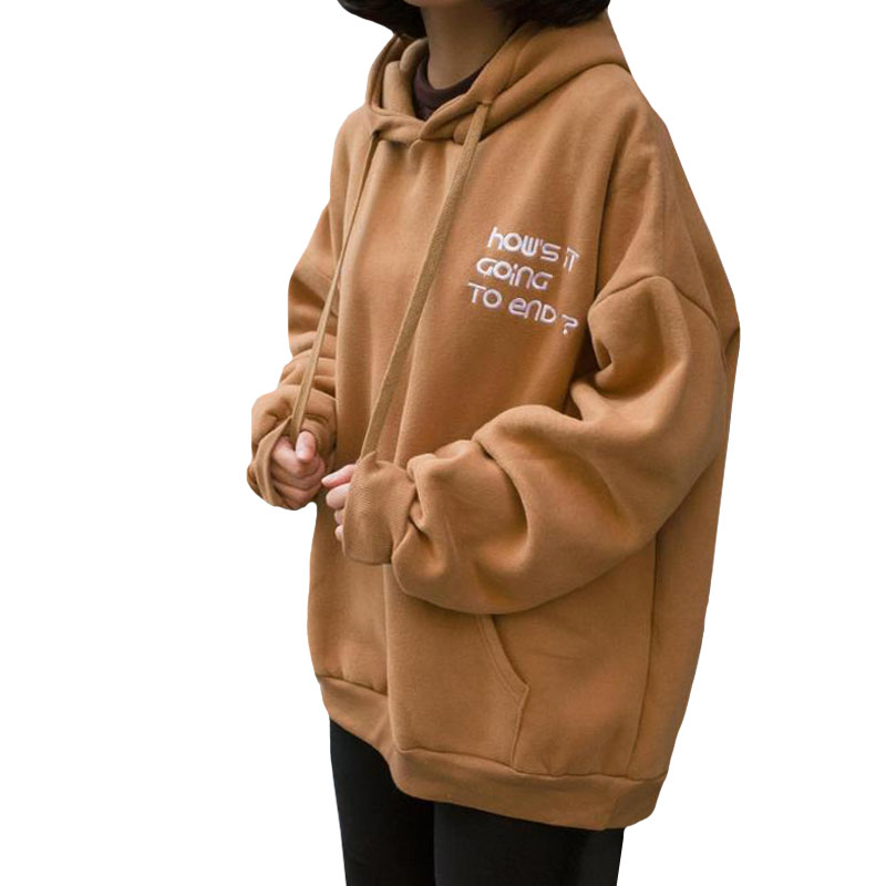 / 秋冬韓版寬松慵懶風字母繡花連帽加絨加厚套頭超火衛衣上衣外套女