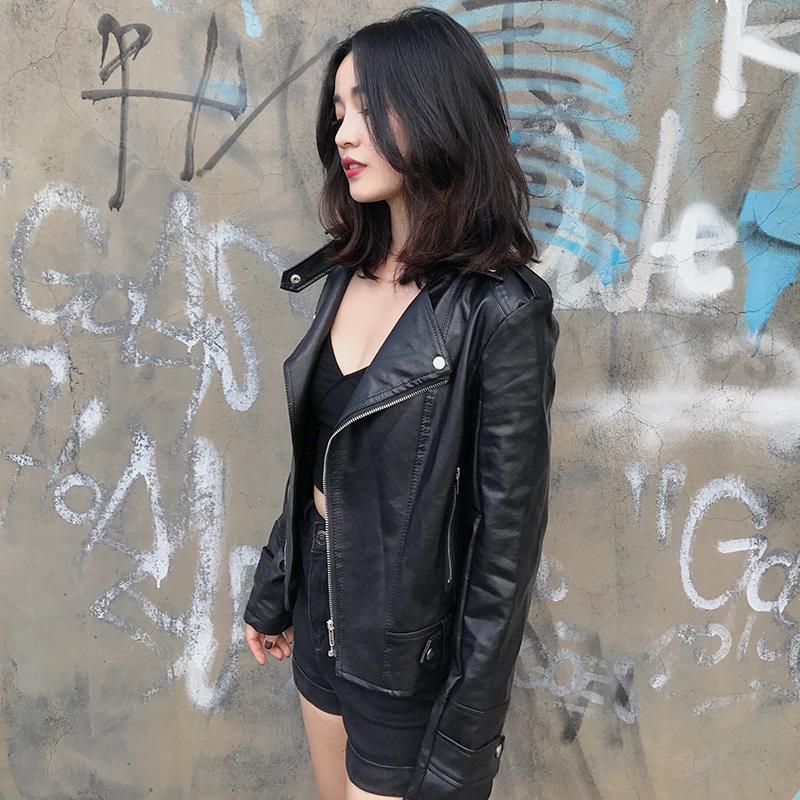 / 女秋裝新款韓版修身顯瘦機車皮衣女短款pu皮夾克拉鏈外套長袖上衣