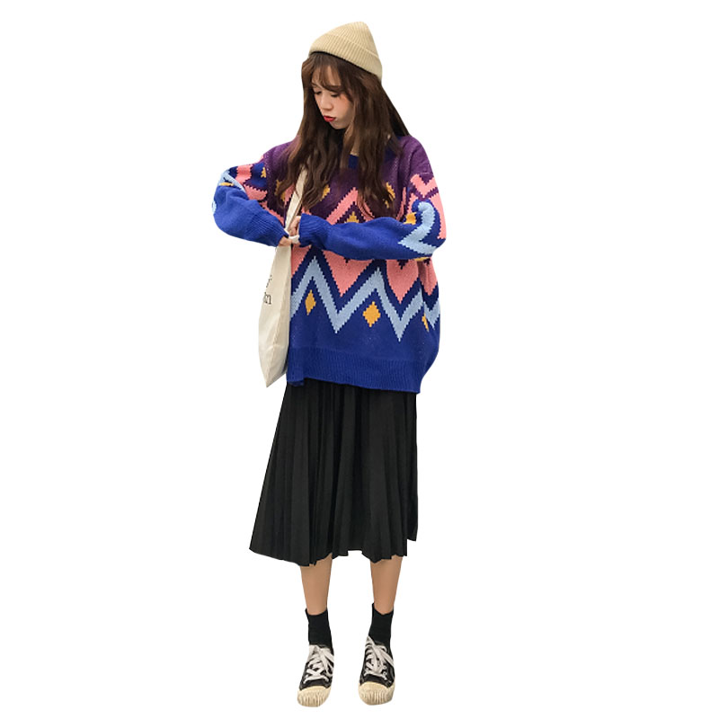 / 韓版時尚休閑套裝秋季撞色中長款針織毛衣+壓褶半身長裙兩件套女