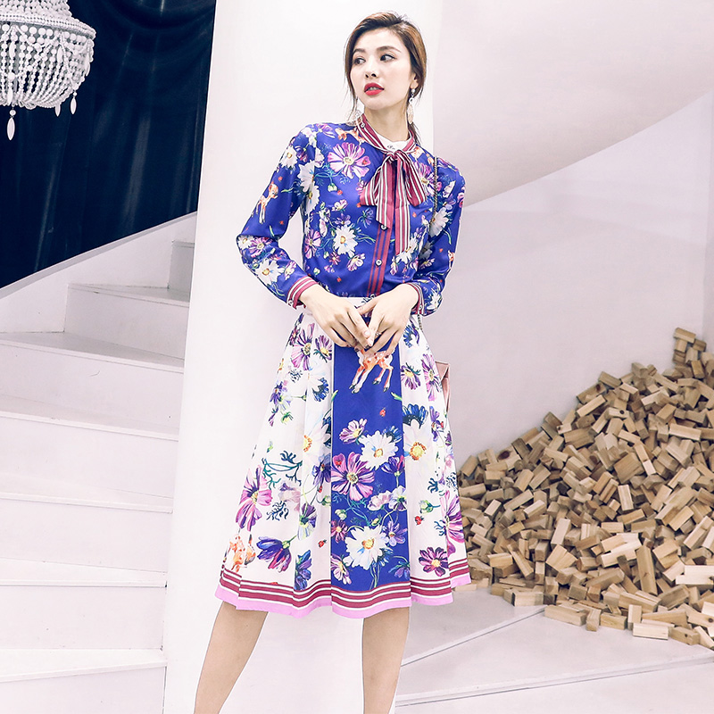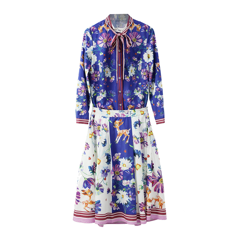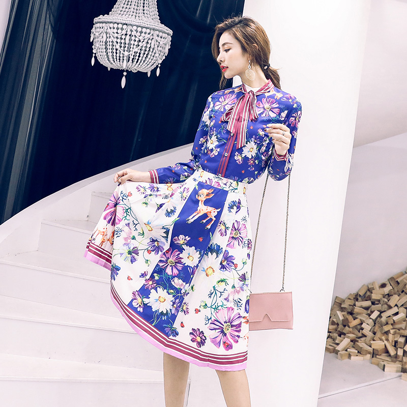 / 洋氣印花套裝女秋裝2018新款時尚氣質襯衫半身裙復古港味兩件套潮