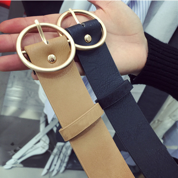 / 包郵 韓版2018新款潮流百搭簡約圓形金屬PU皮女式寬腰帶針扣皮帶