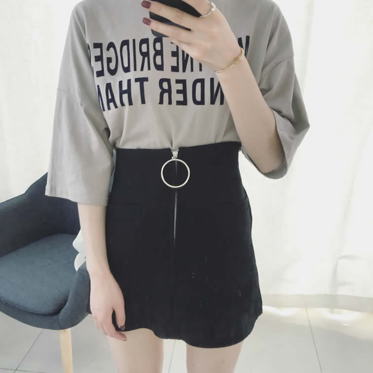/ 早春新款女裝氣質拉鏈高腰修身顯瘦學生百搭A字包臀半身裙短裙女