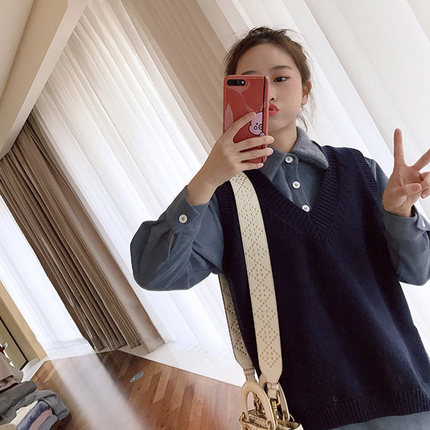 1308深藍毛衣馬甲+藍色連衣裙