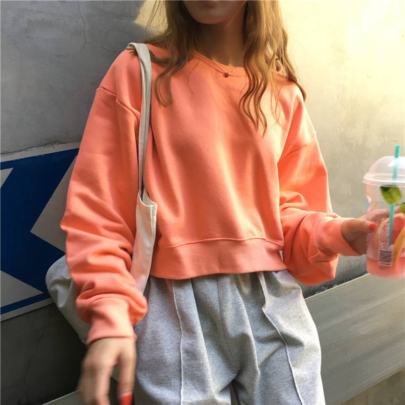秋裝女裝2018新款韓版短款字母無帽套頭衛衣寬松長袖T恤上衣學生