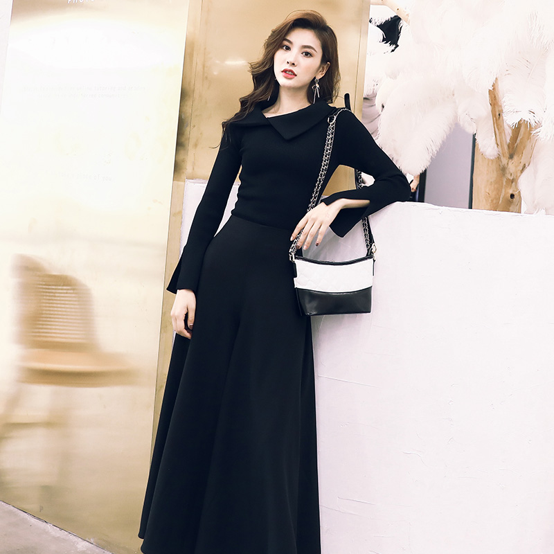 名媛氣質2018秋季新款女裝翻領修身針織衫上衣高腰闊腿褲時髦套裝