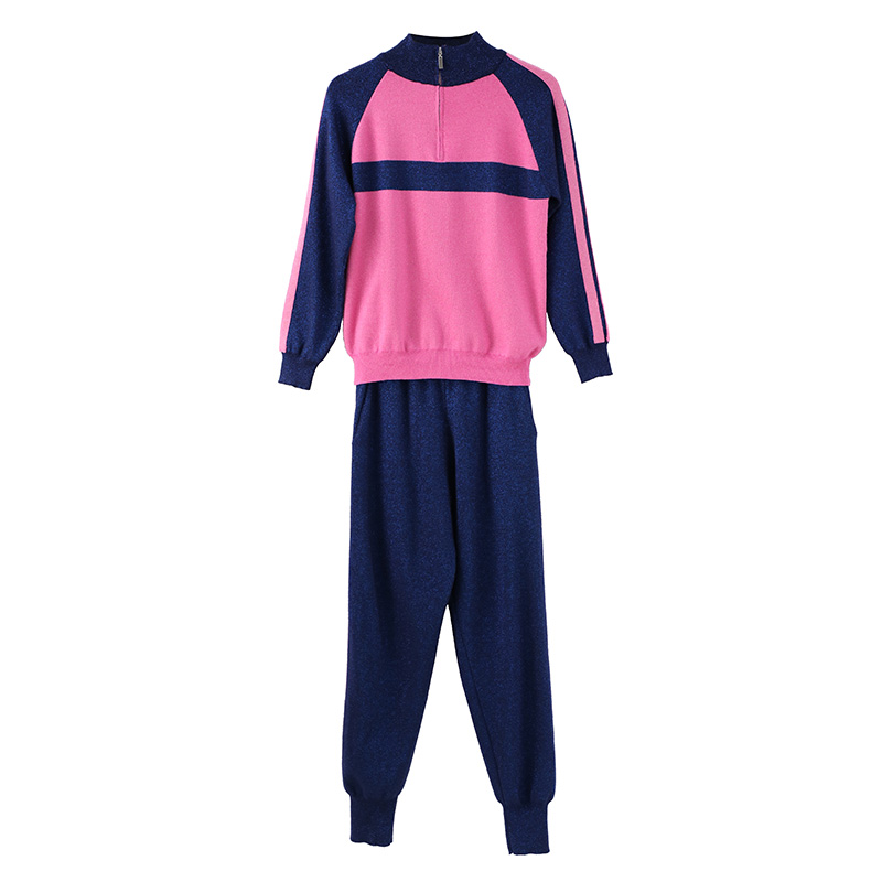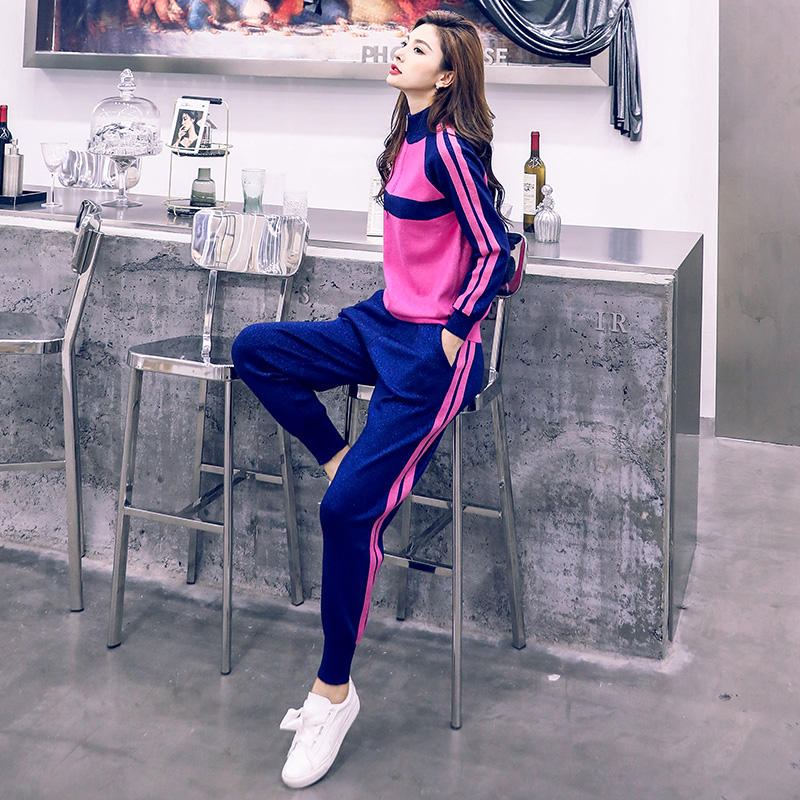 運動套裝女士秋裝2018新款寬松休閑秋冬撞色針織運動服時尚兩件套