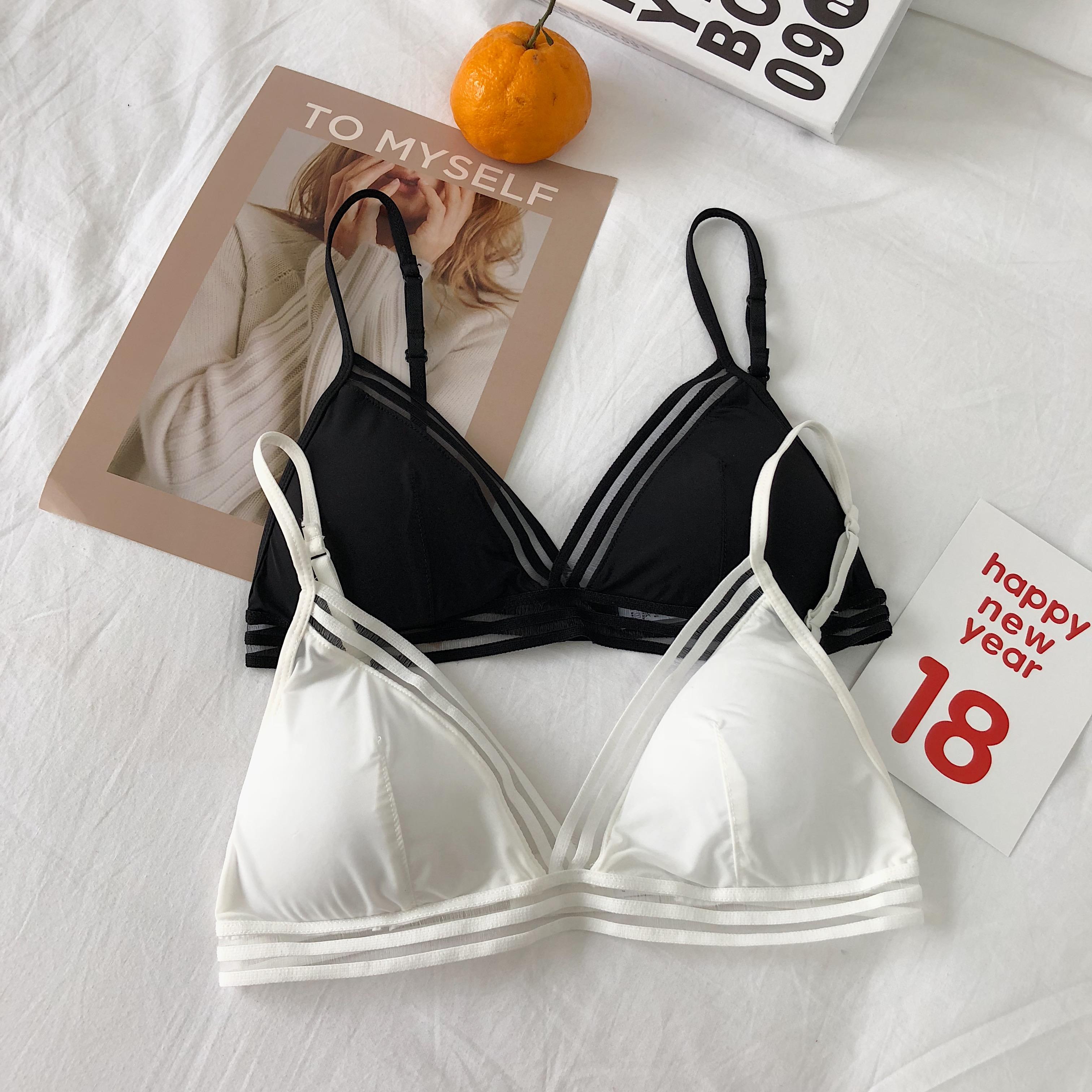 / 春夏韓版冰絲無鋼圈三角杯文胸帶胸墊性感美背吊帶小背心內衣女士