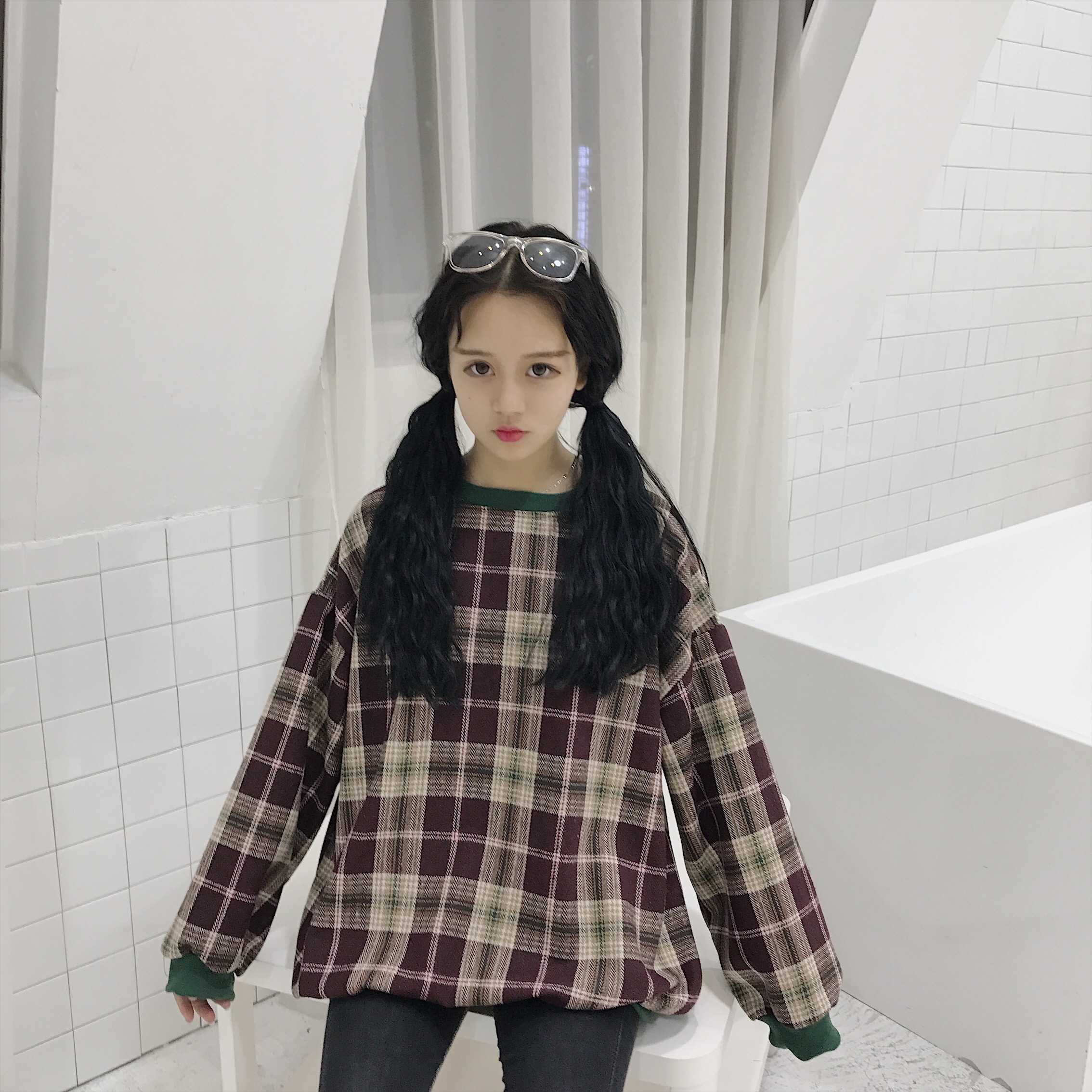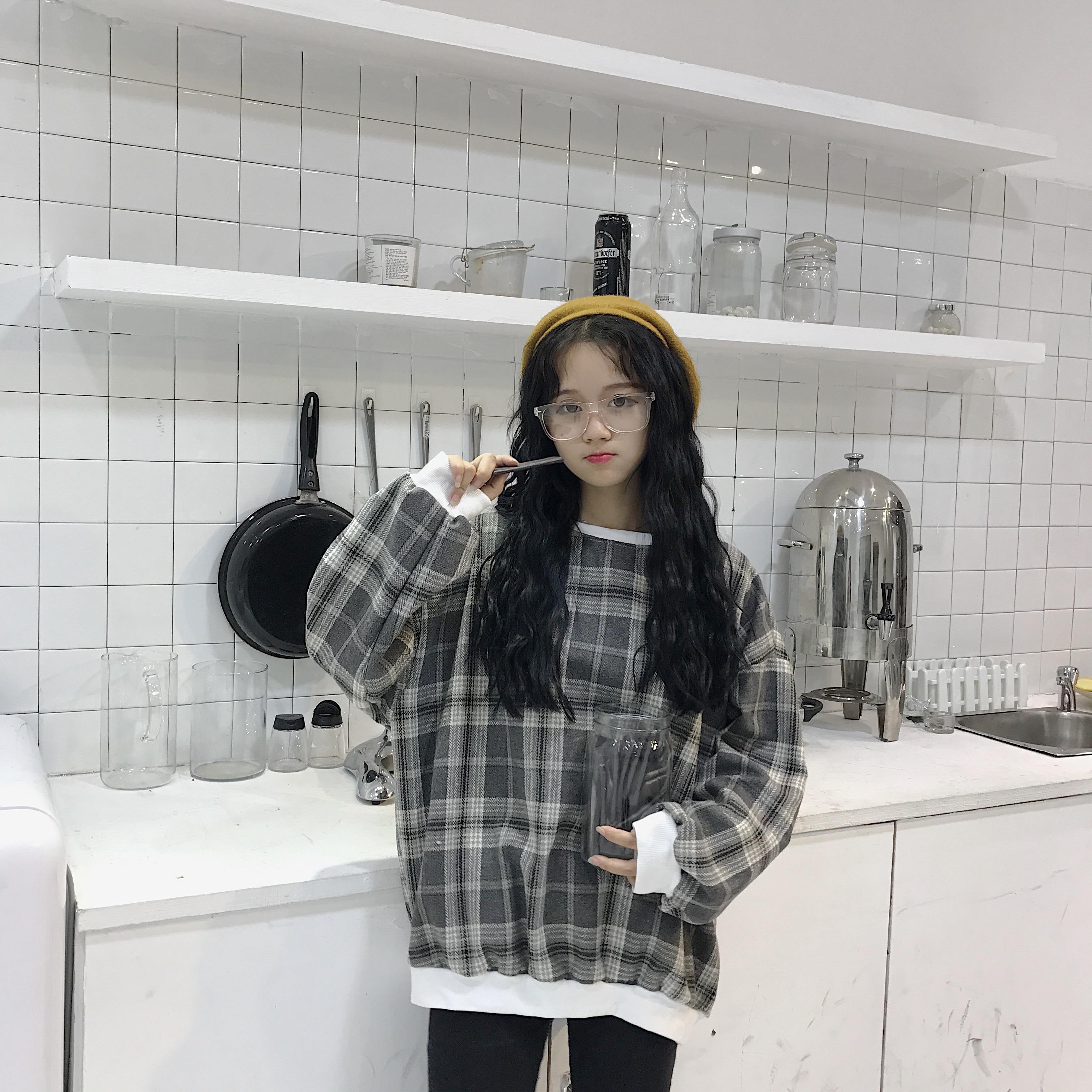/ 秋季女裝2018新款韓版學院風復古寬松格子長袖套頭衛衣上衣外套潮