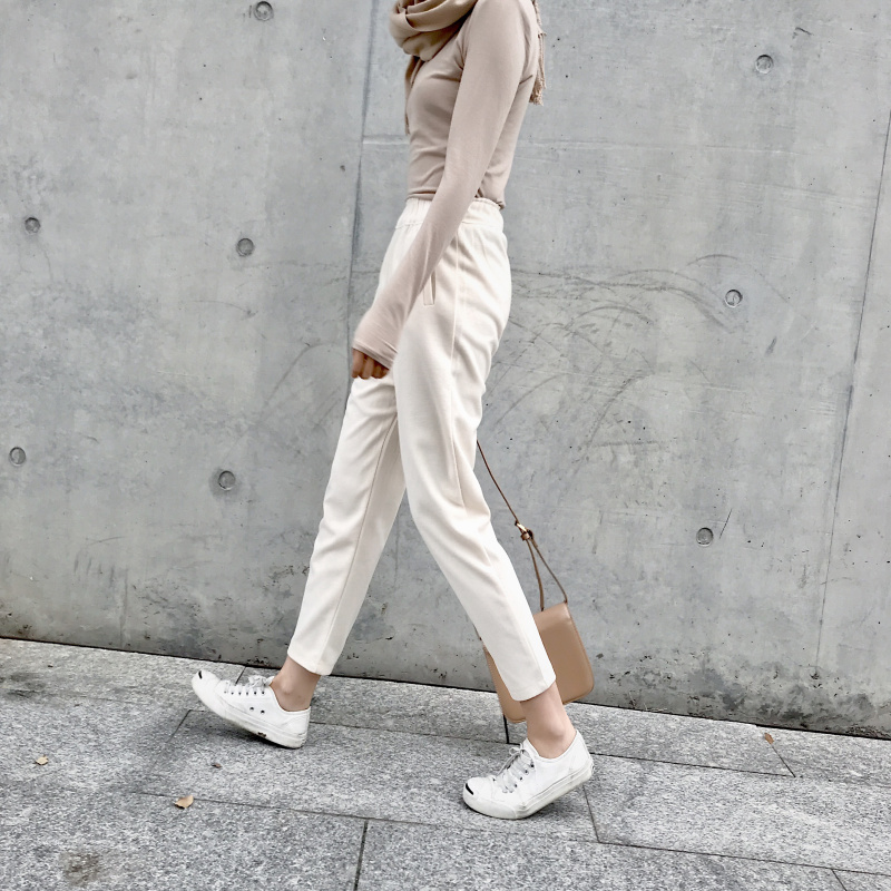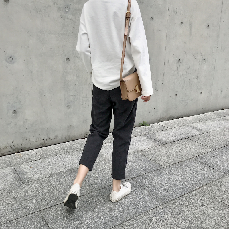 / 秋冬女裝韓版寬松加厚呢子哈倫褲九分褲高腰直筒褲休閑褲學生褲子