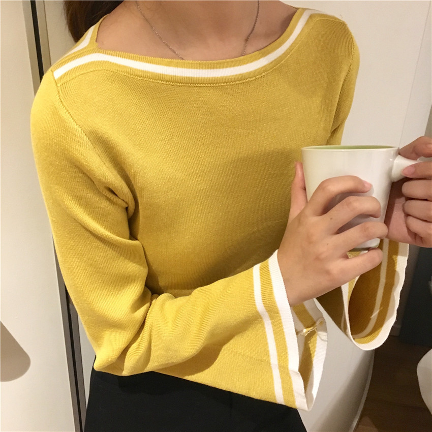 / 秋季女裝韓版修身顯瘦氣質套頭喇叭袖針織衫長袖打底衫毛衣上衣潮