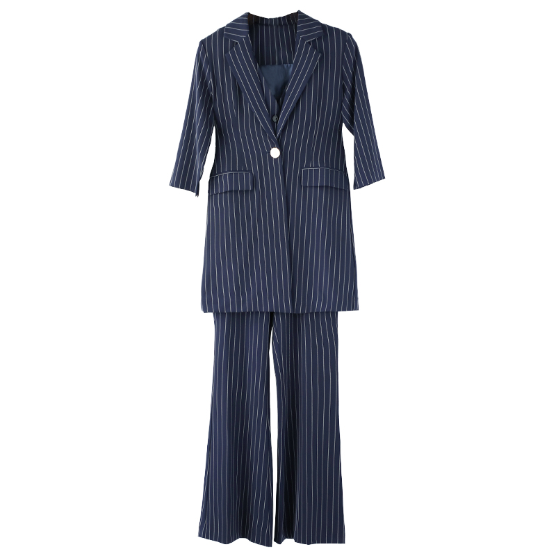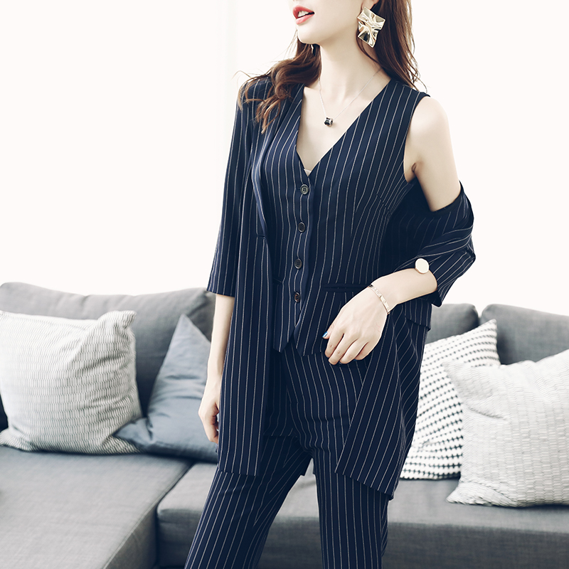 時尚女裝條紋套裝女2018秋季新款韓版修身顯瘦氣質小馬甲三件套