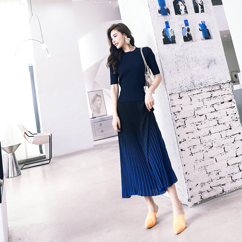 中長款針織衫上衣連衣裙2018秋季新款韓版時尚名媛氣質百褶半身裙