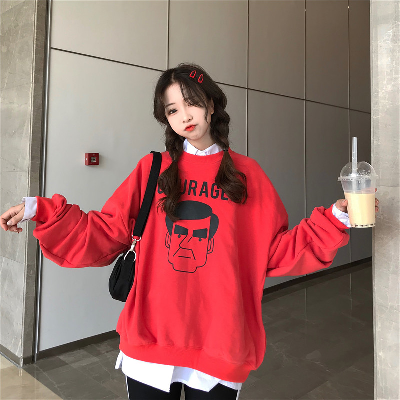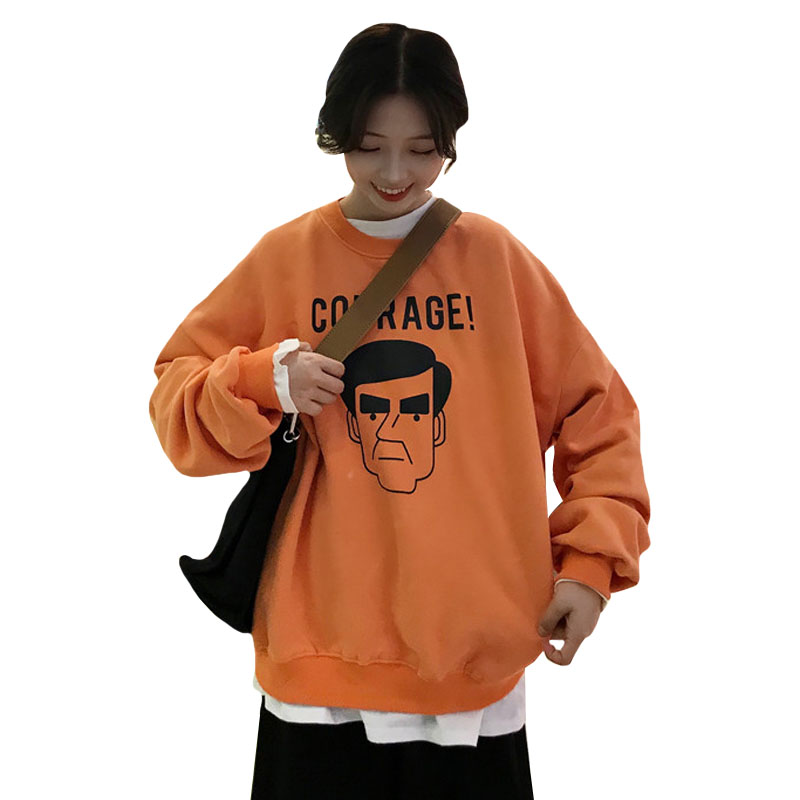 / 2018新款秋冬韓版寬松原宿風個性人物字母加絨加厚超火衛衣外套女