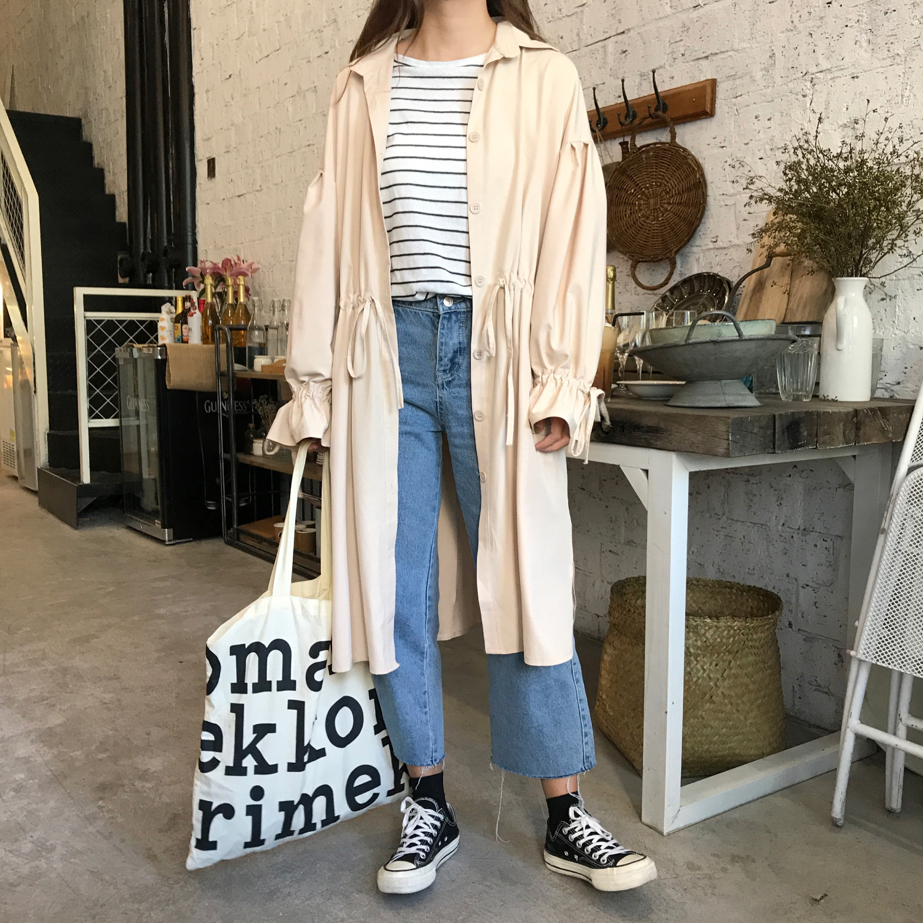 / 秋季女裝韓版氣質寬松中長款襯衣百搭休閑長袖過膝風衣上衣外套潮