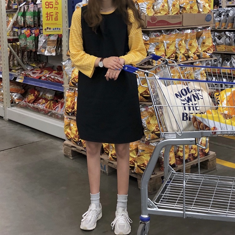 黃條T單件|黑條T單件|黑色背心裙單件|皮粉背心裙單件