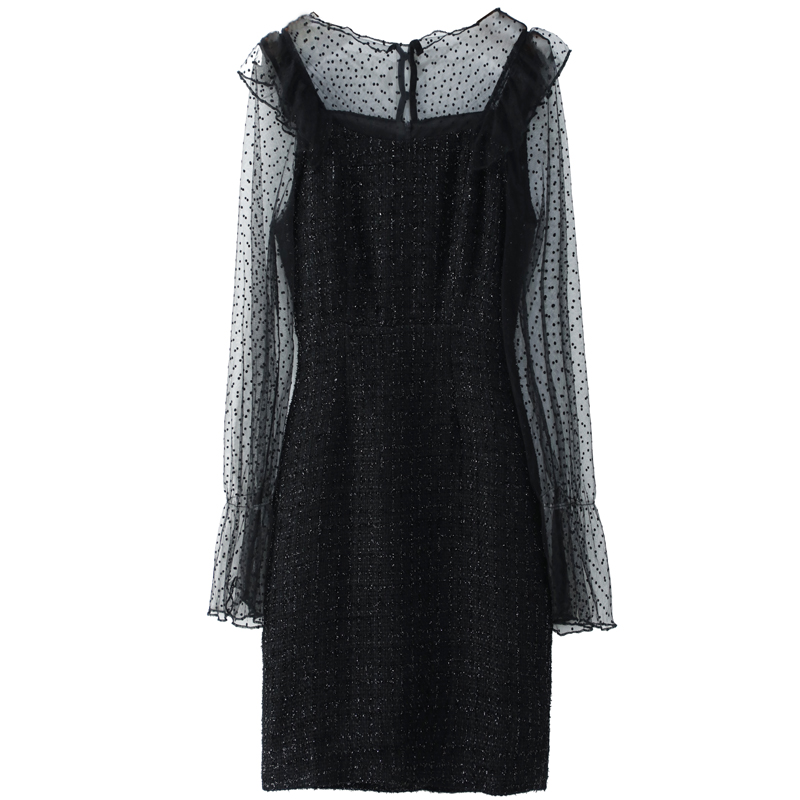 2018秋季新款氣質修身顯瘦網紗拼接裙子名媛風毛呢小香連衣裙女潮