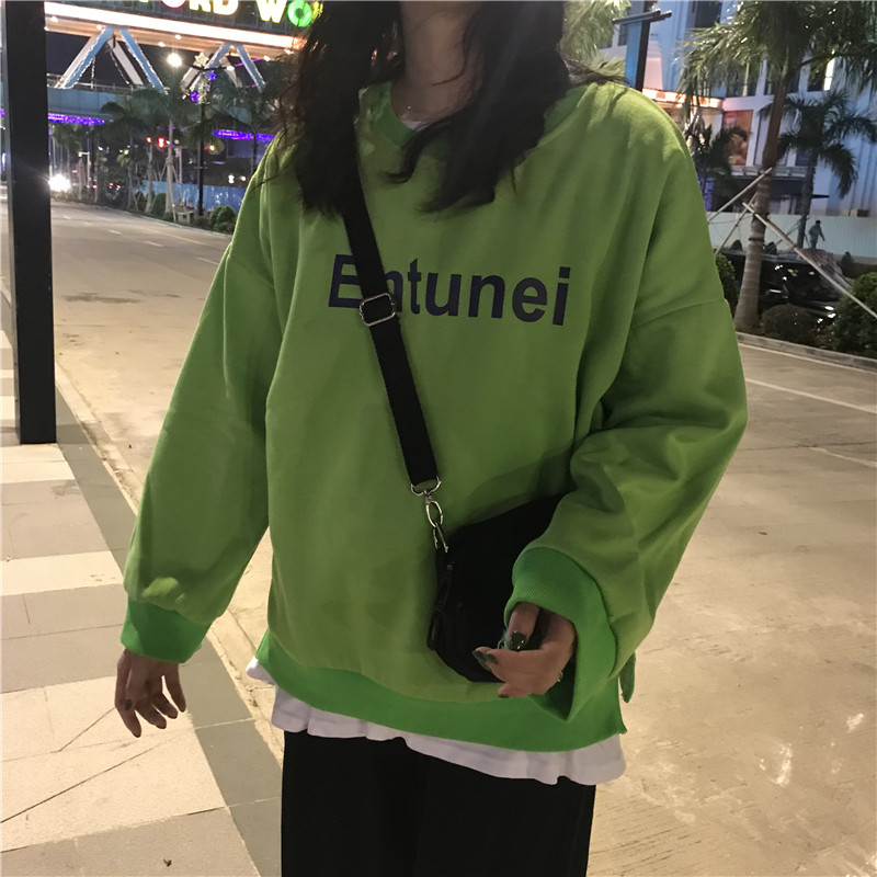 秋冬女裝韓版中長款原宿風字母寬松加絨加厚套頭超火衛衣上衣外套