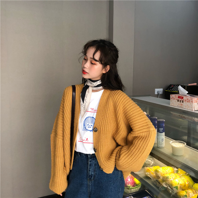 / 秋冬女裝韓版chic慵懶風寬松網紅毛衣針織衫開衫外套+打底連衣裙