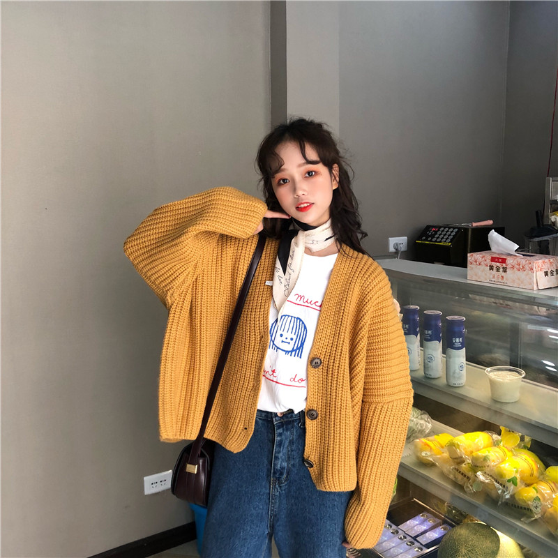 秋冬女裝韓版chic慵懶風寬松網紅毛衣針織衫開衫外套+打底連衣裙