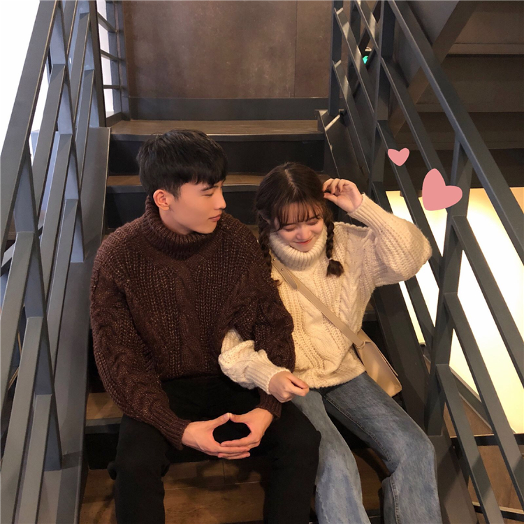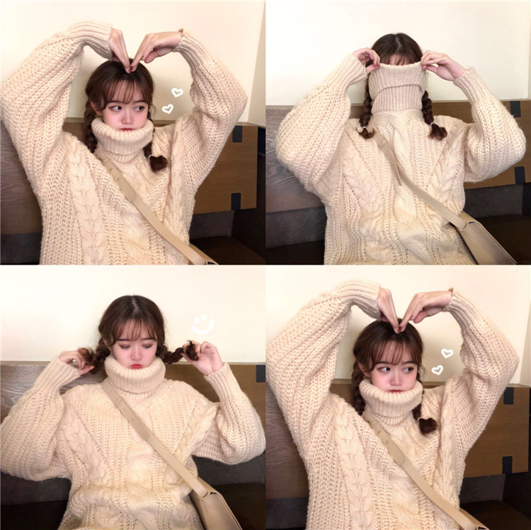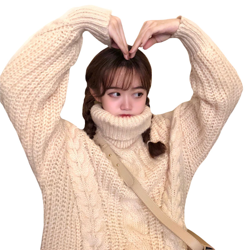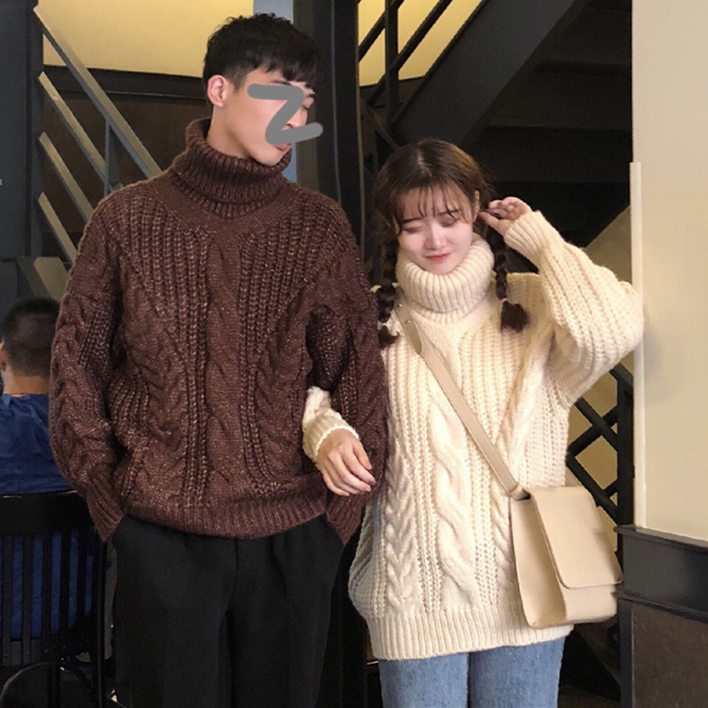 2018新款秋冬女裝韓版情侶款高領寬松加厚網紅套頭針織衫毛衣外套