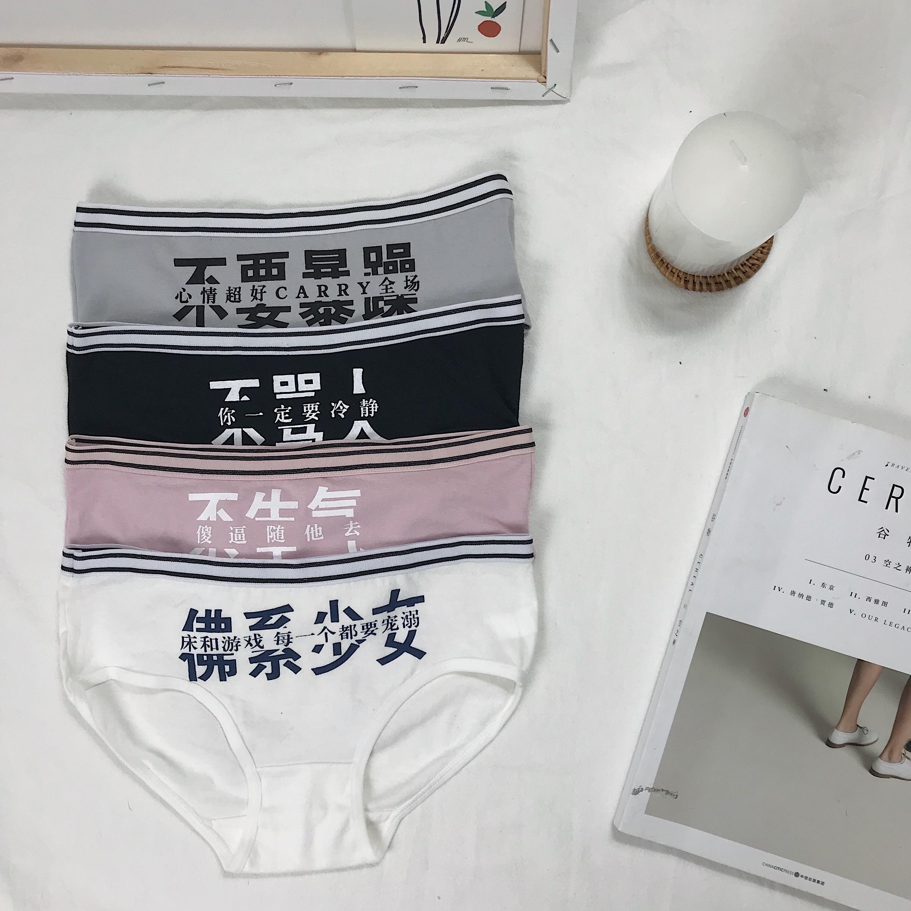 / 夏季甜美簡約文字小清新少女棉質親膚透氣無痕高腰三角褲內褲女士