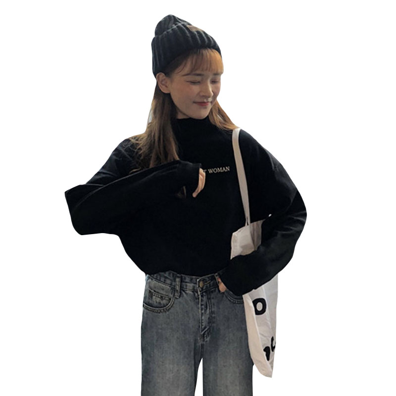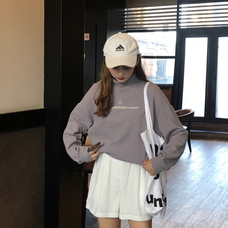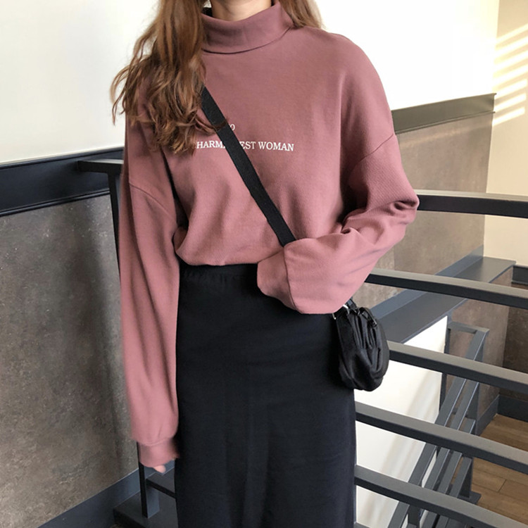 2018新款秋冬韓版寬松字母半高領套頭pp home超火衛衣上衣外套女