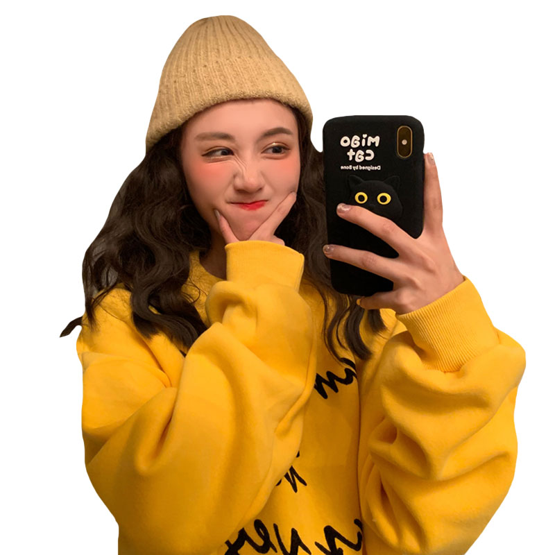 2018新款秋冬韓版寬松慵懶風字母加絨加厚套頭超火衛衣上衣外套女