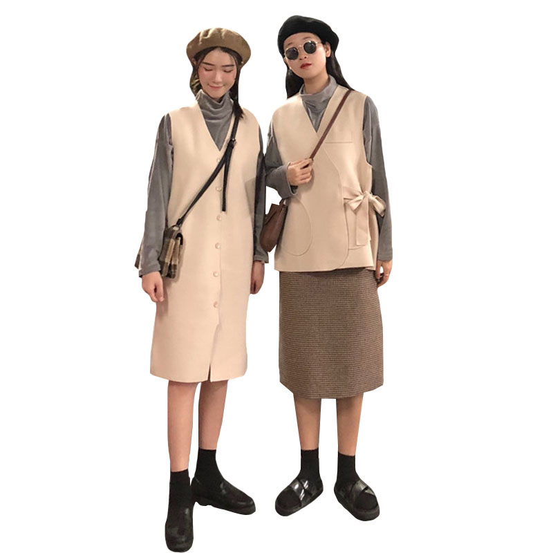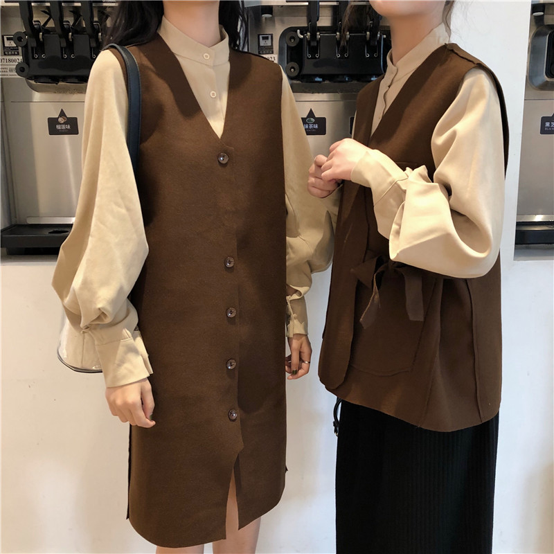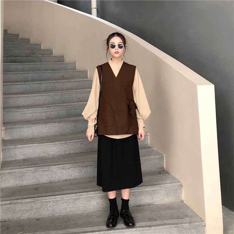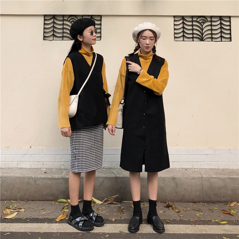 灰色打底衫單件|黃色打底衫單件|卡其襯衣單件|黑色短款馬甲單件|米白短款馬甲單件|咖啡短款馬甲單件|黑長款背心裙單件|米白長款背