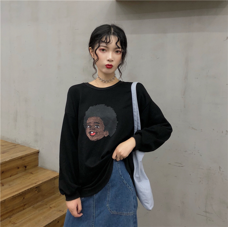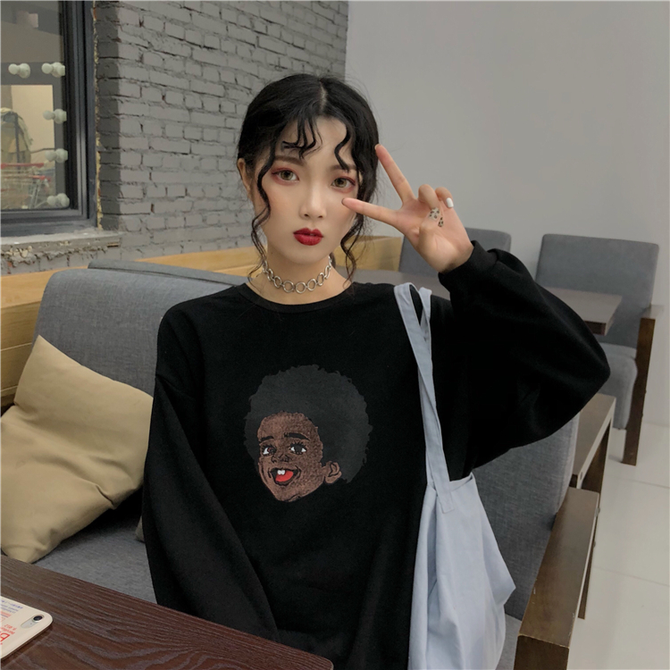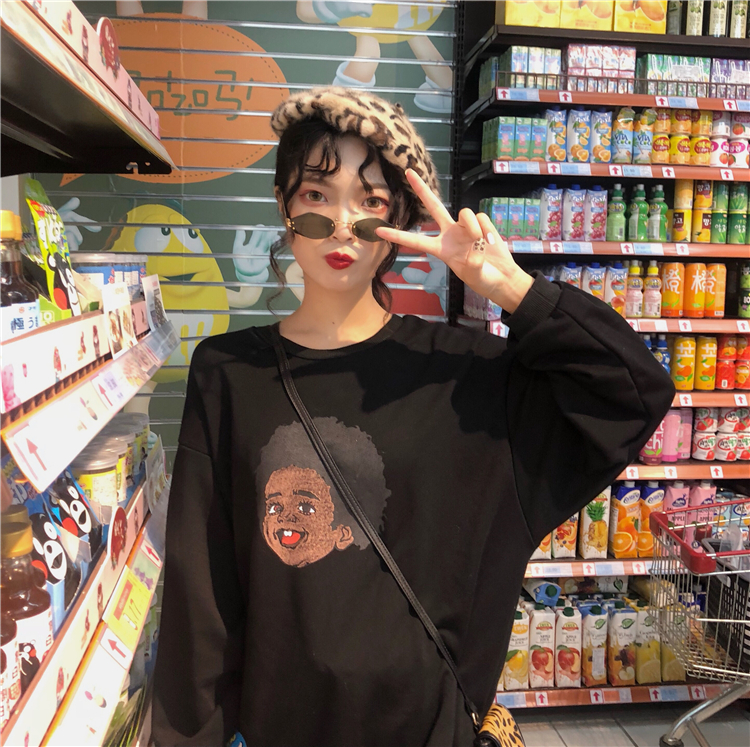 / 秋季女裝韓版中長款復古原宿風卡通BF風寬松pp home超火衛衣外套