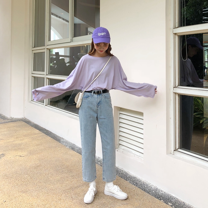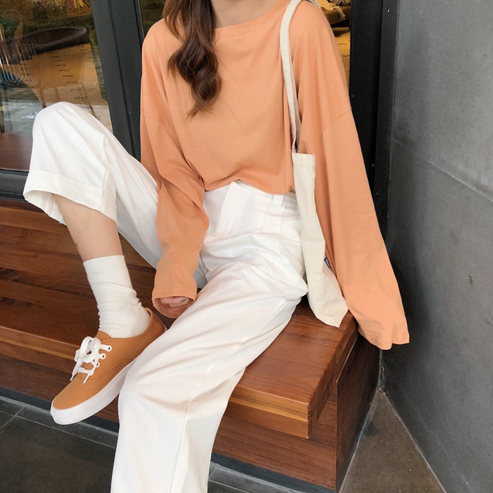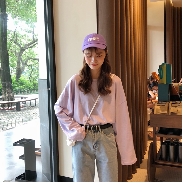 / 秋裝女裝韓版百搭寬松純色長袖T恤套頭圓領休閑顯瘦學生體恤上衣