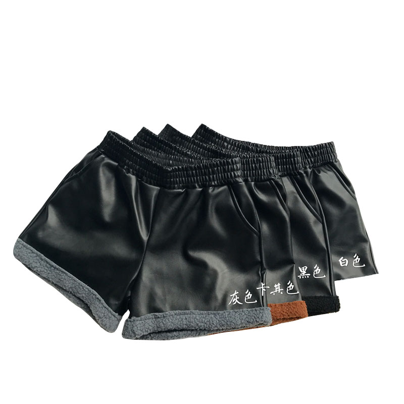 / 秋冬韓版PU皮褲子松緊腰燈芯絨拼接闊腿褲加絨休閑褲直筒褲短褲女