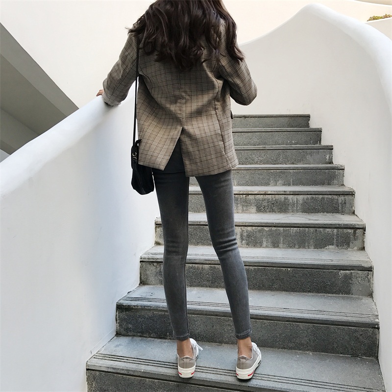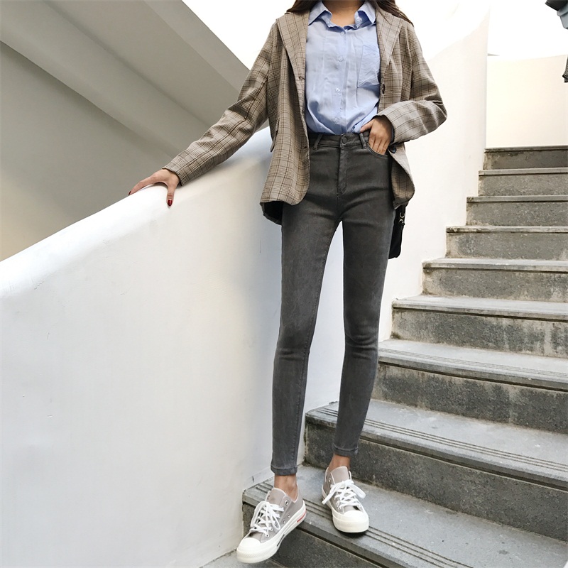 / 秋冬韓版復古做舊加絨牛仔褲高腰緊身顯瘦小腳褲鉛筆褲學生褲子女