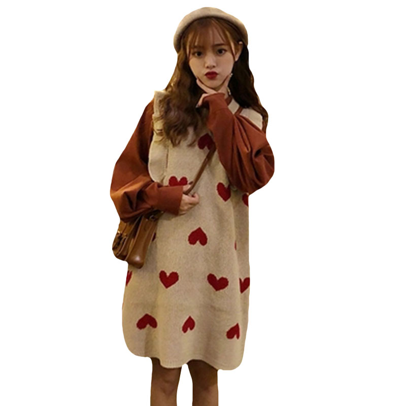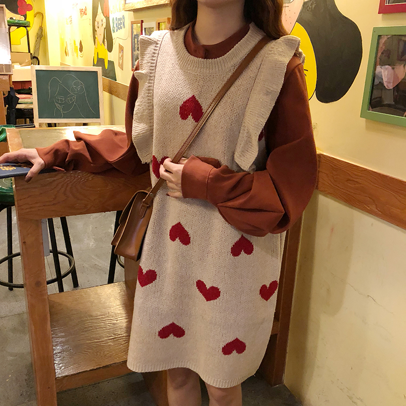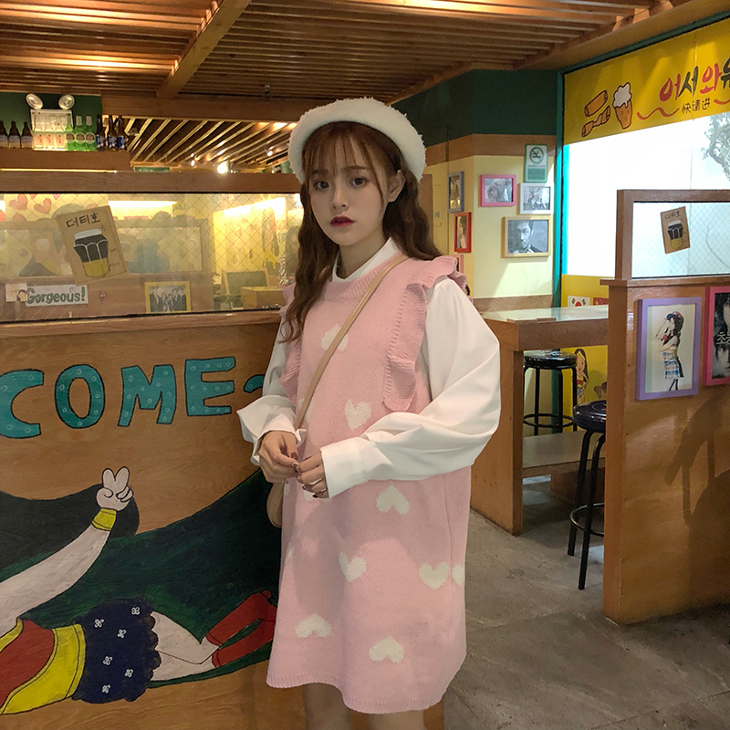 / 可可里小姐~冬季女裝新款寬松簡約襯衫內搭+愛心中長款針織背心裙