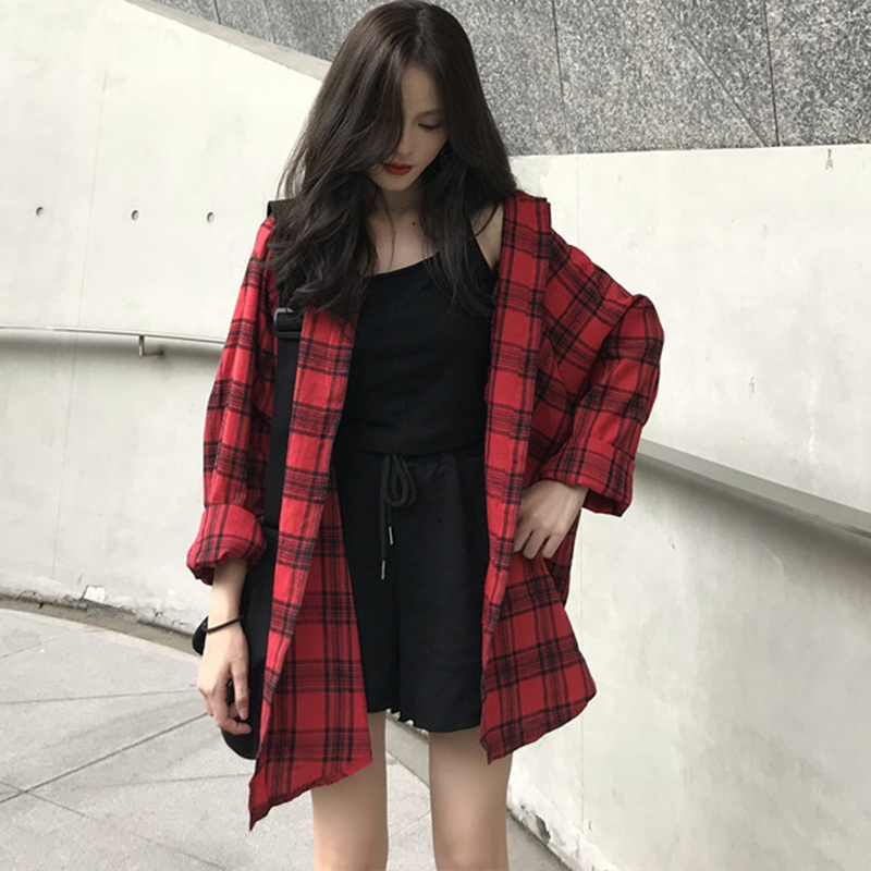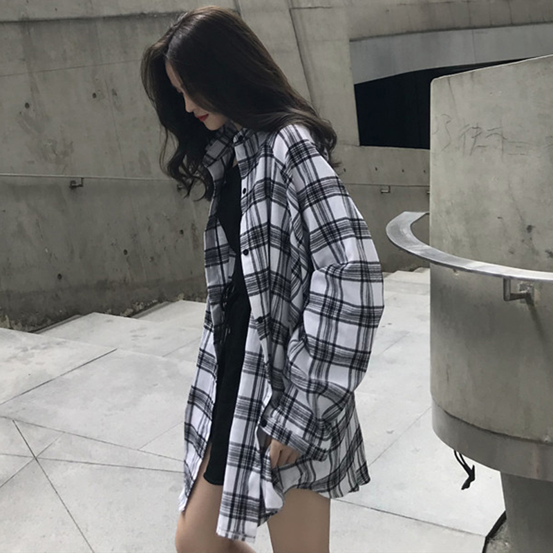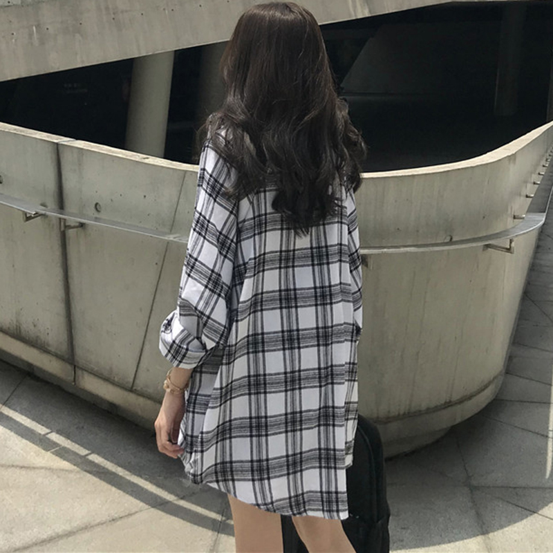 襯衣女夏季新款韓版女裝中長款寬松格子襯衫休閑百搭長袖防曬開衫