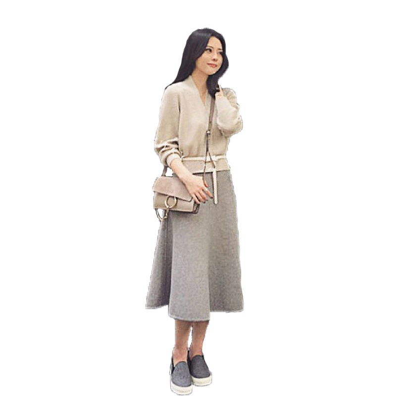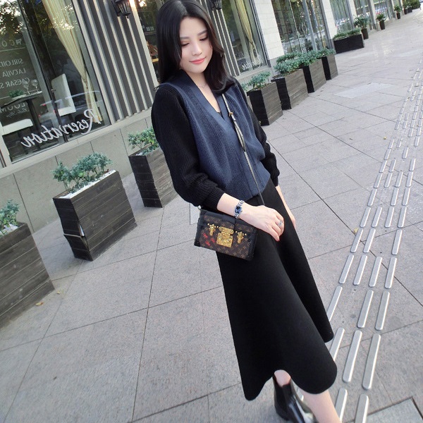 1340淺灰毛衣+灰色裙子XS8618|1340海軍藍毛衣+黑色裙子XS8618