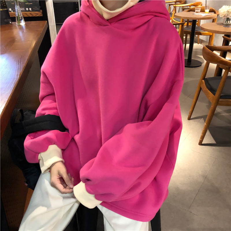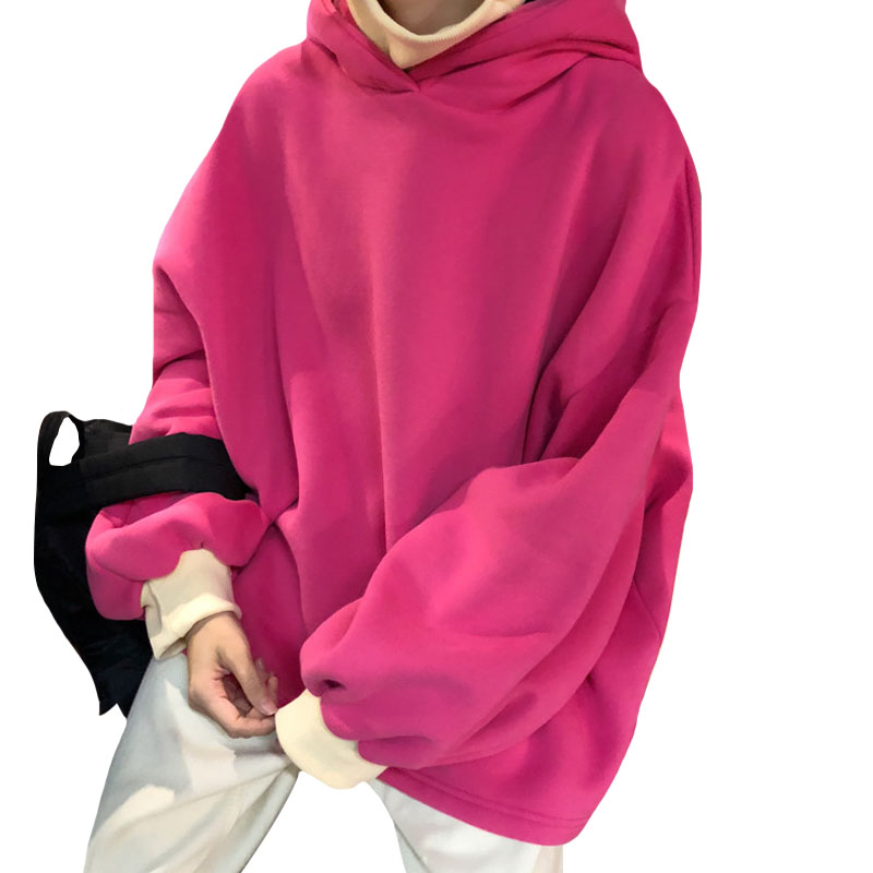 / 秋冬女裝韓版寬松撞色拼接高領加絨加厚連帽套頭超火衛衣上衣外套
