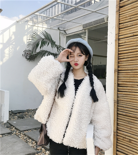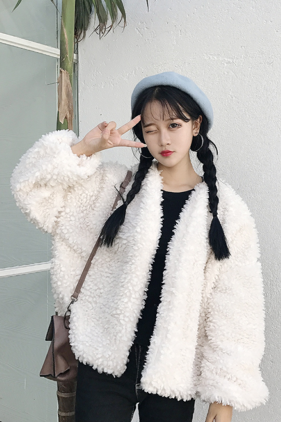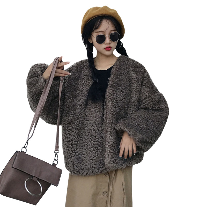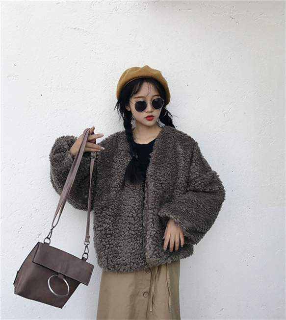 2018新款秋冬韓版短款仿羊羔毛開衫上衣寬松慵懶風保暖長袖外套女