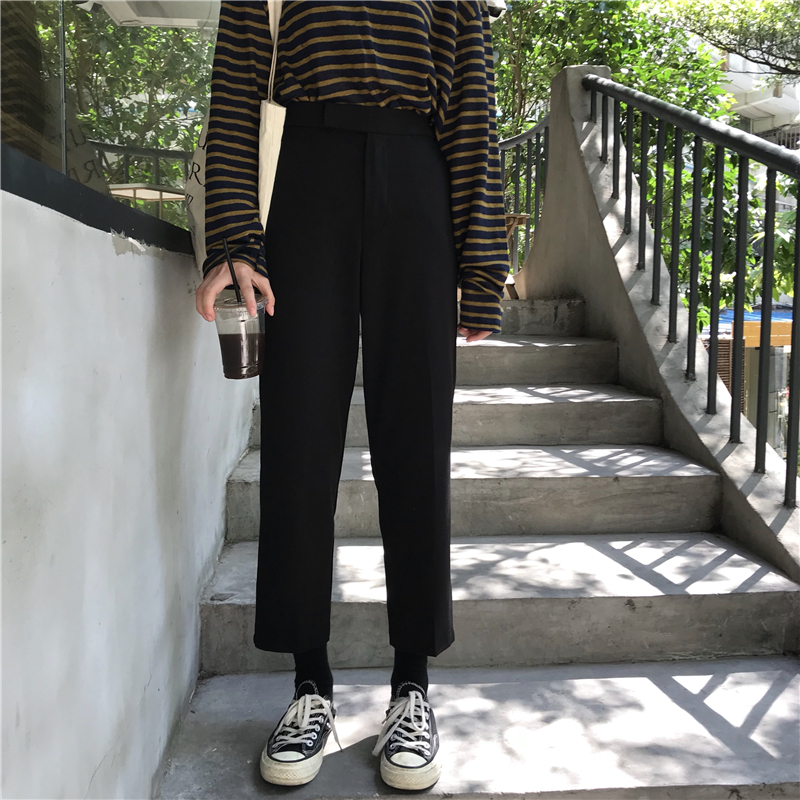 秋季女裝韓版寬松氣質煙管褲直筒褲高腰顯瘦垂感西褲休閑褲九分褲
