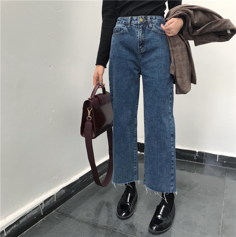 配合水洗磨白的處理褲紙整體看起來炒雞復古 上身隨意搭配就hin韓范了