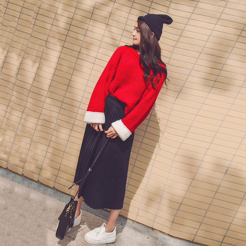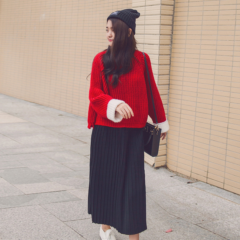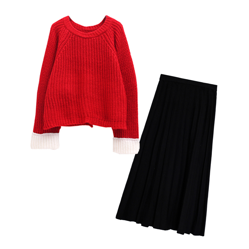 / 秋冬季egg裙少女毛衣配連衣裙子桔梗長款氣質法式初戀兩件套裝